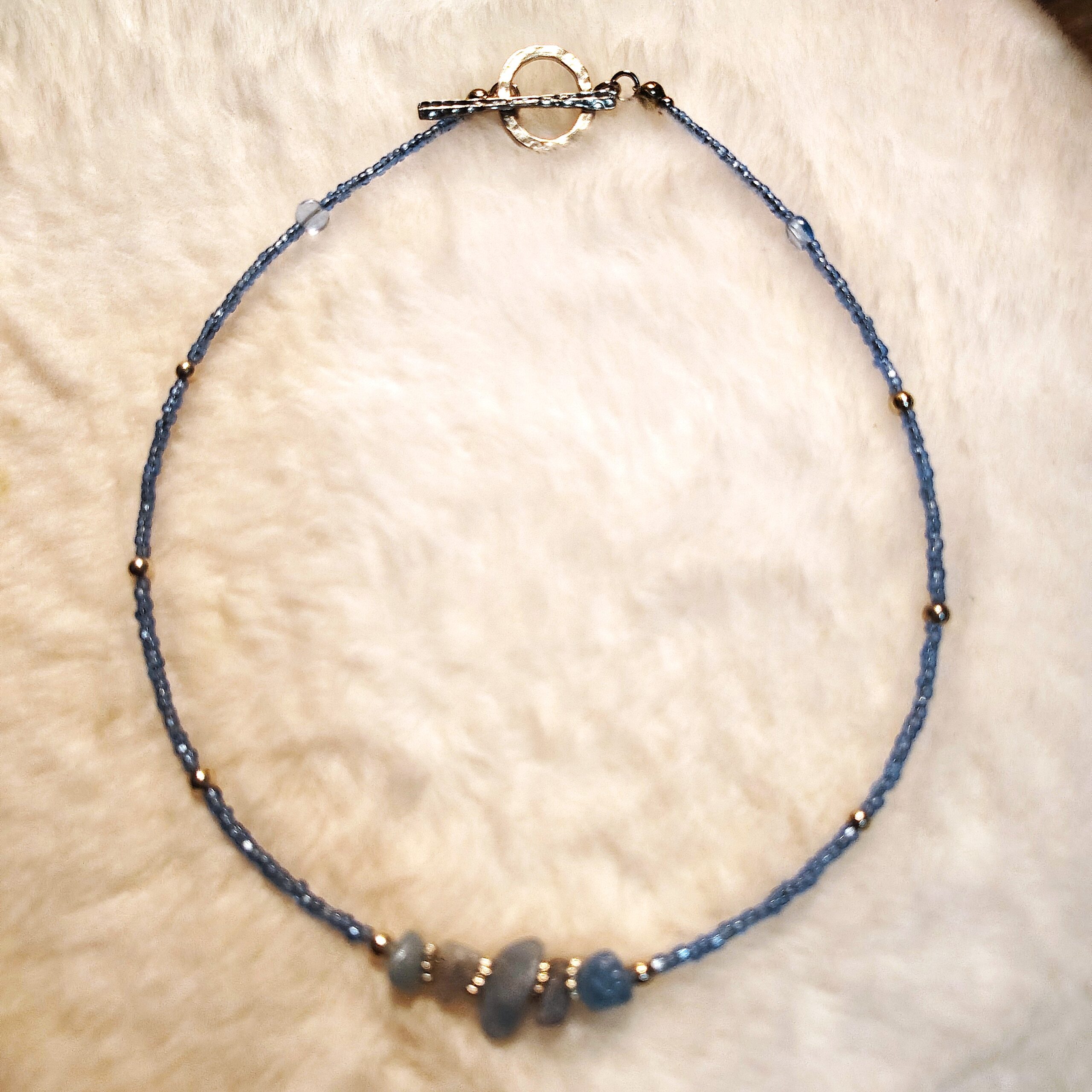 Genuine aquamarine gems for a touch of natural beauty adding glistening glass seed beads with a comfortable 14″ length fit, easy on and off toggle clasp. Perfect accessory for casual everyday wear or for any special occasion.