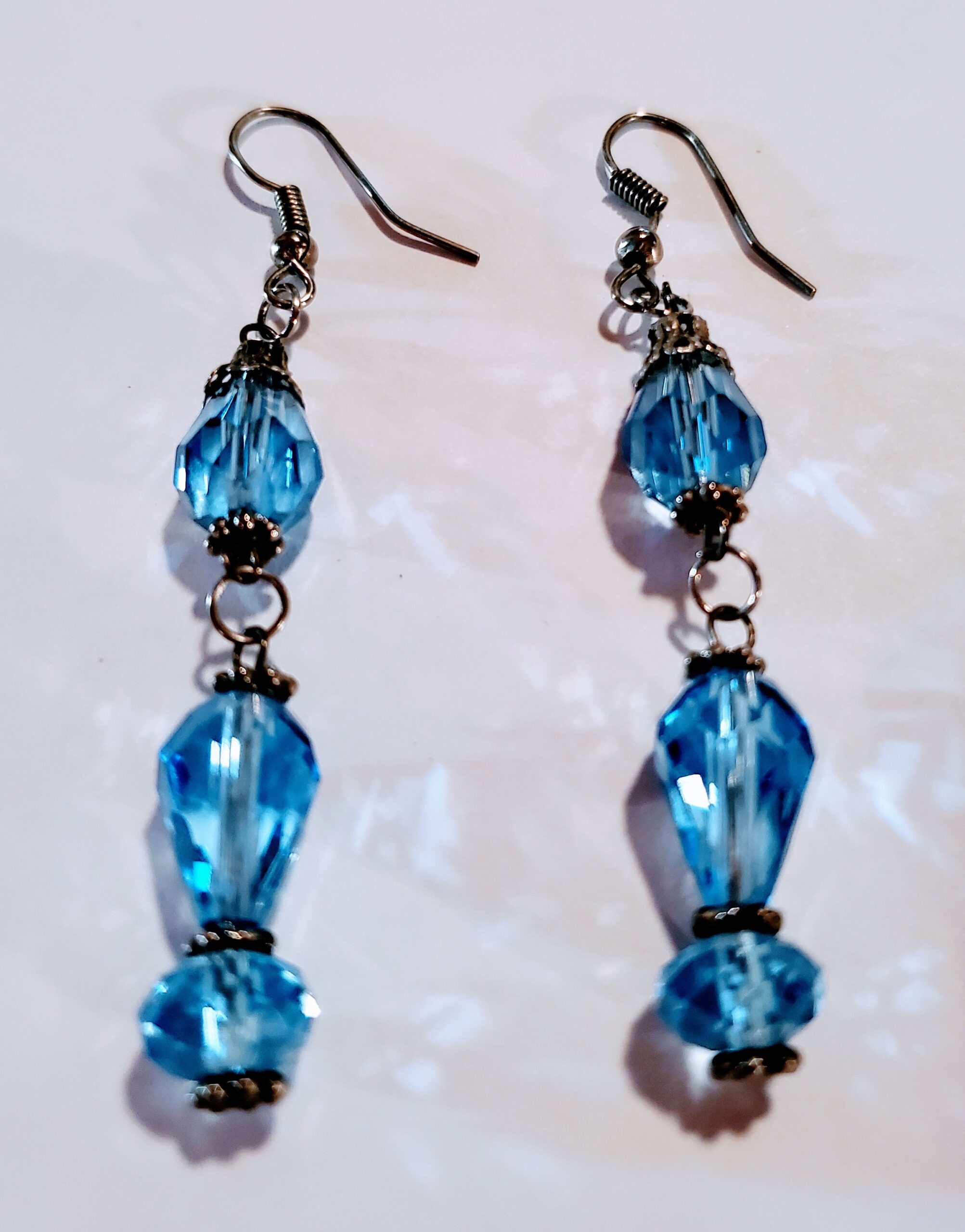 - Handmade with faceted round 5.5mm and teardrop 9x7mm blue crystals