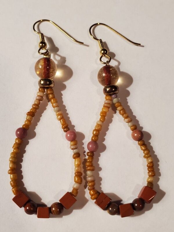 The mix of brown, red, and glass tones creates a stunning, earthy aesthetic that complements any outfit.