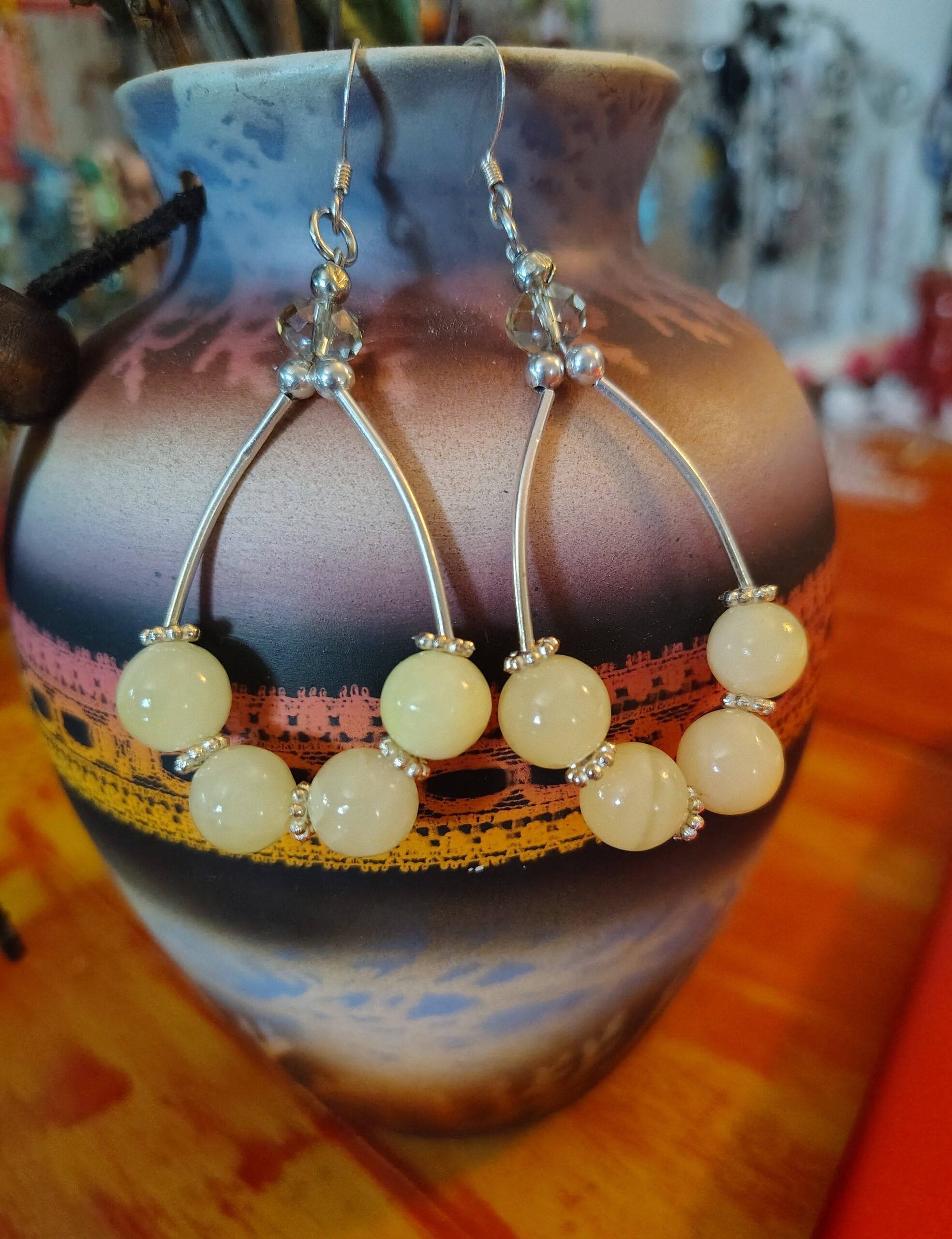 - Handmade earrings with shimmering Calcite beads and faceted crystal