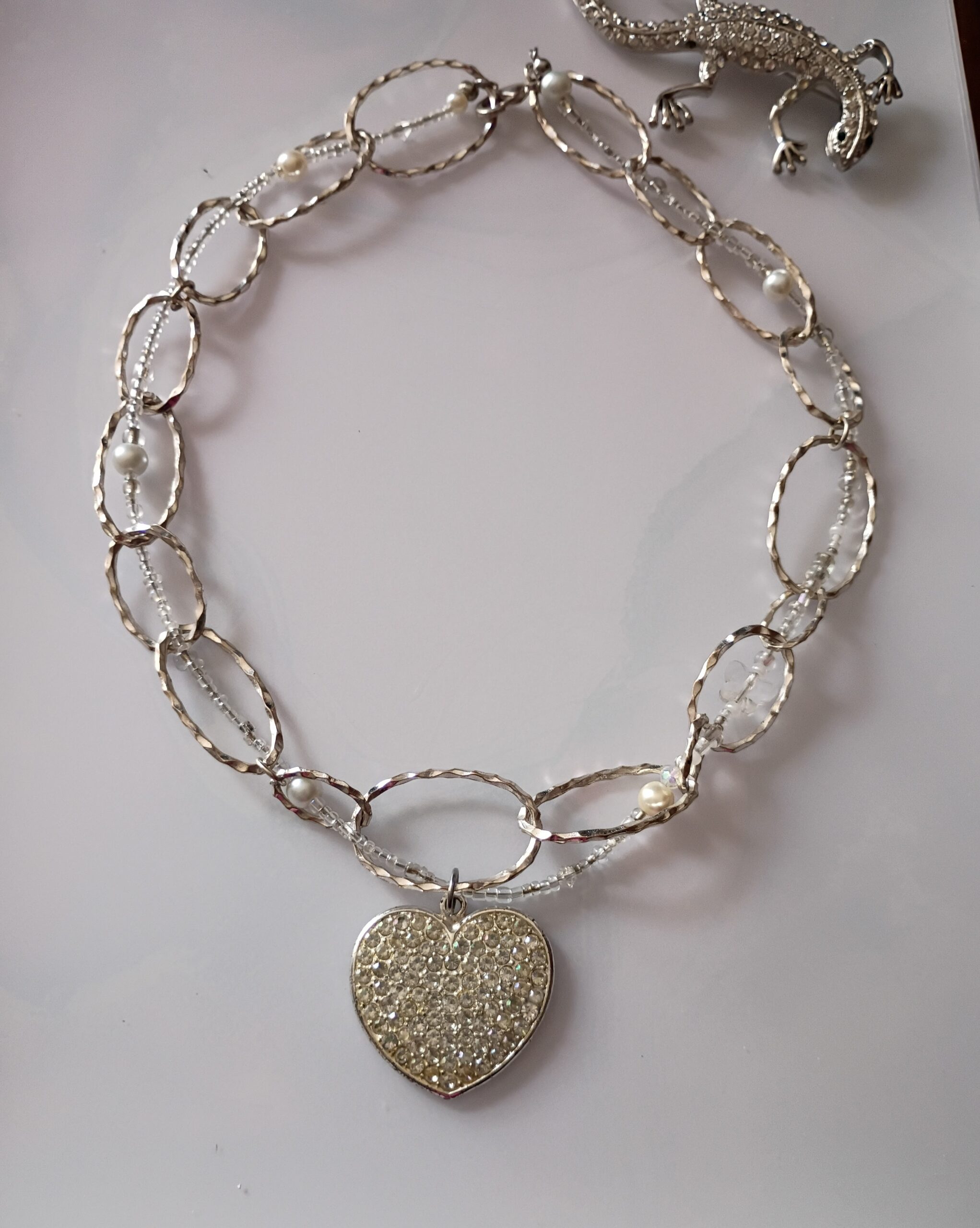 - Dazzling heart pendant adorned with sparkling rhinestones