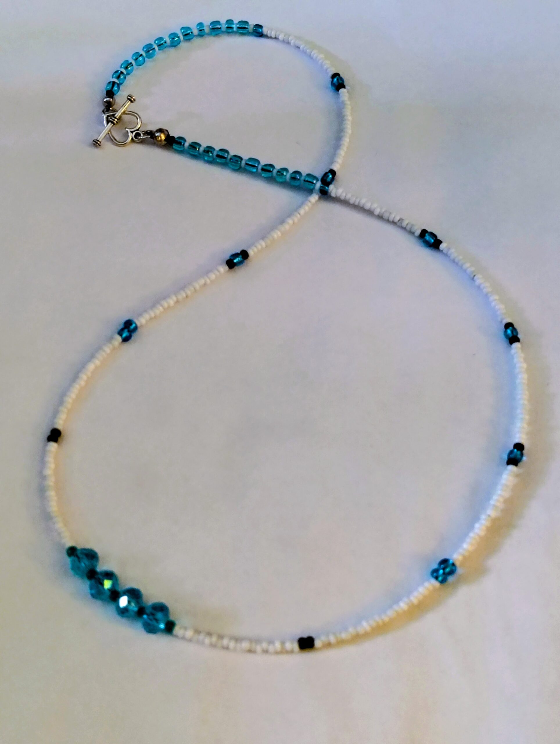The Crystal Blue Necklace is a handmade stunner that elevates any look.