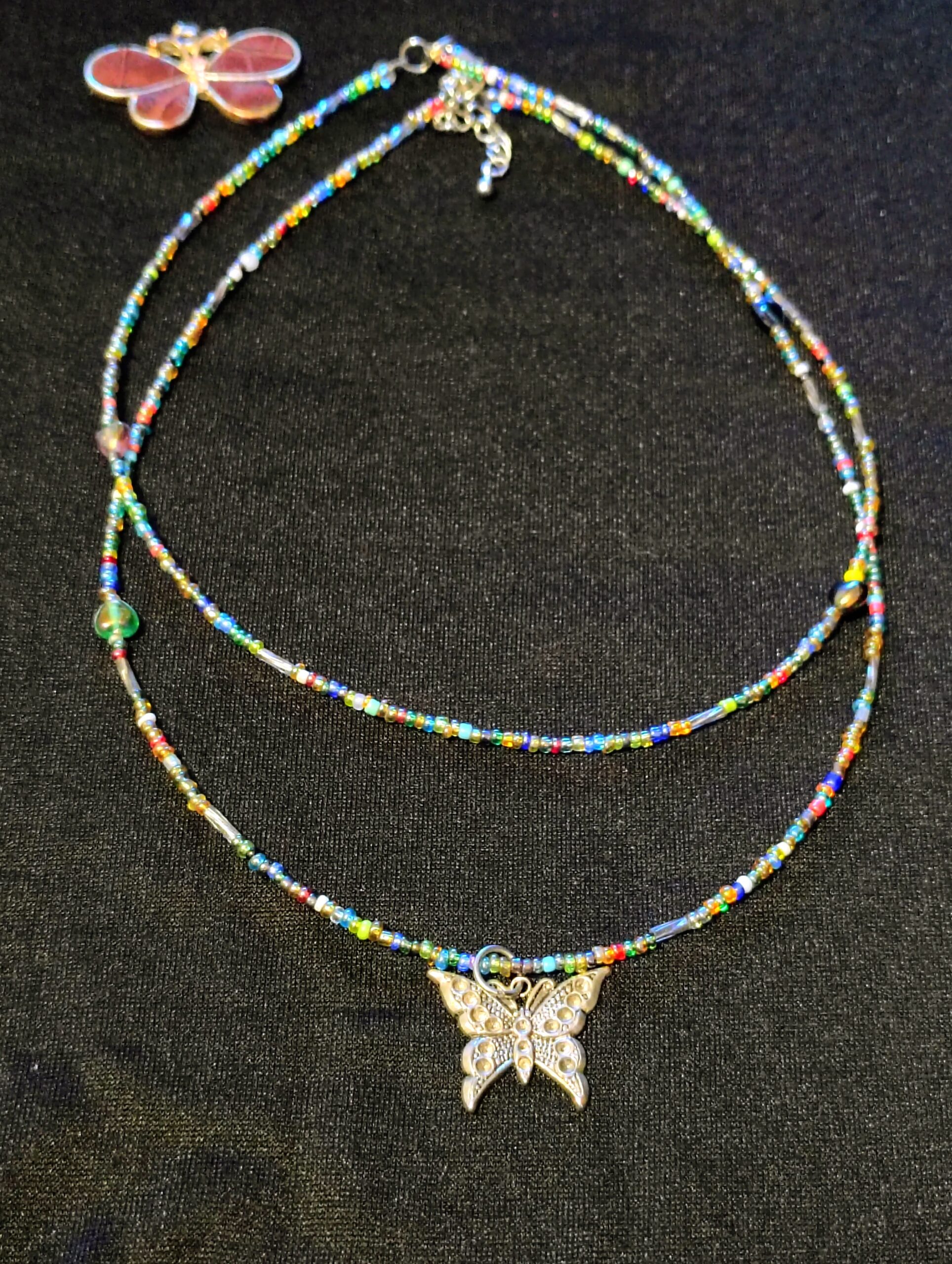 This eye-catching double strand necklace is a true work of art, Handmade with premium glass seed beads.