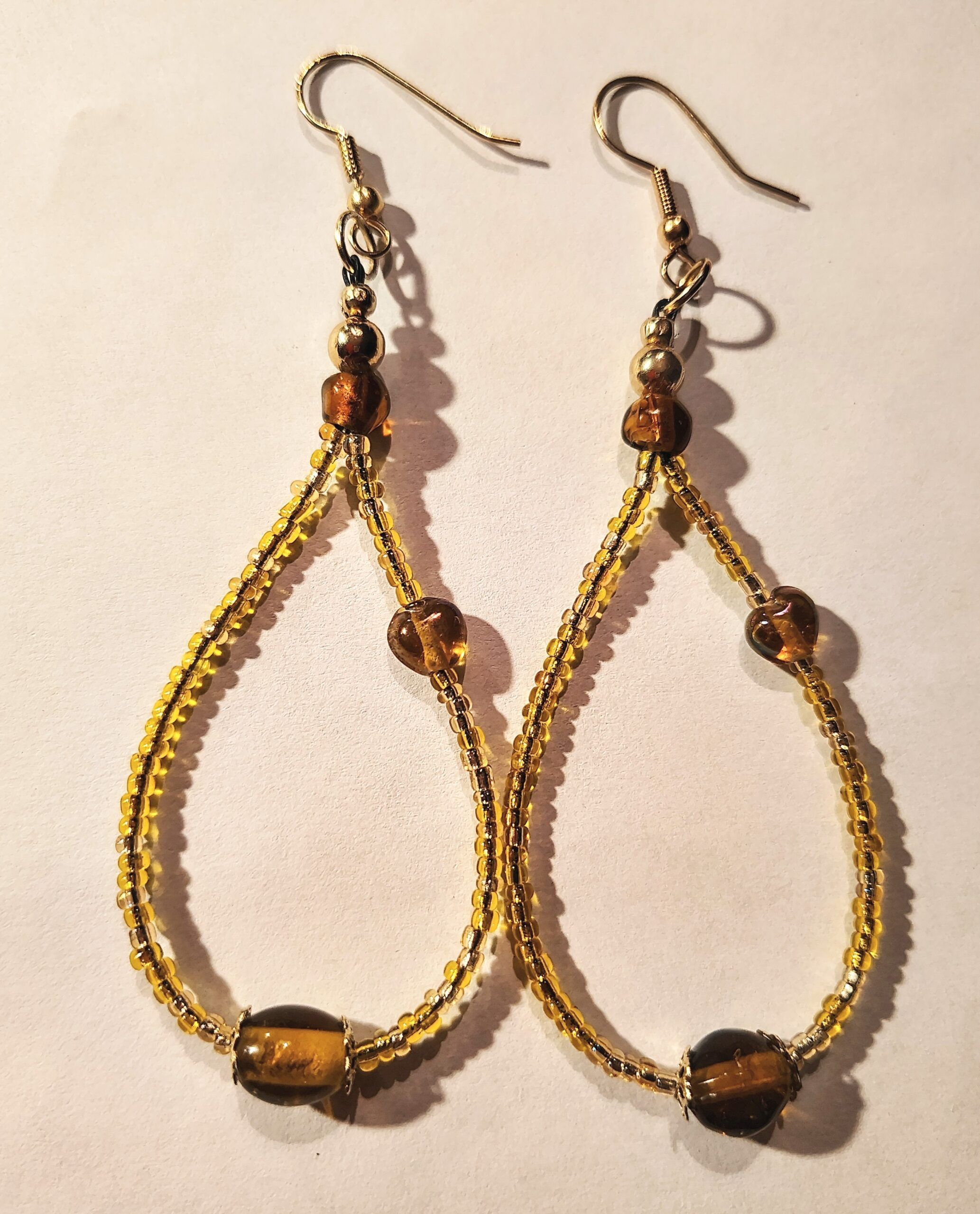 - Handmade with premium glass seed beads in a rich, golden brown hue