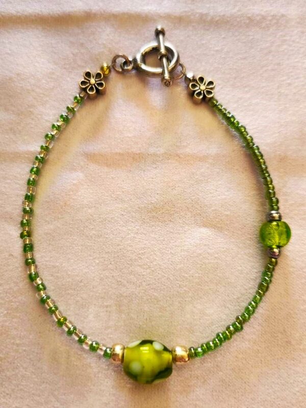 Green Mille Bracelet: vibrant glass seed beads in a mesmerizing millefiori pattern