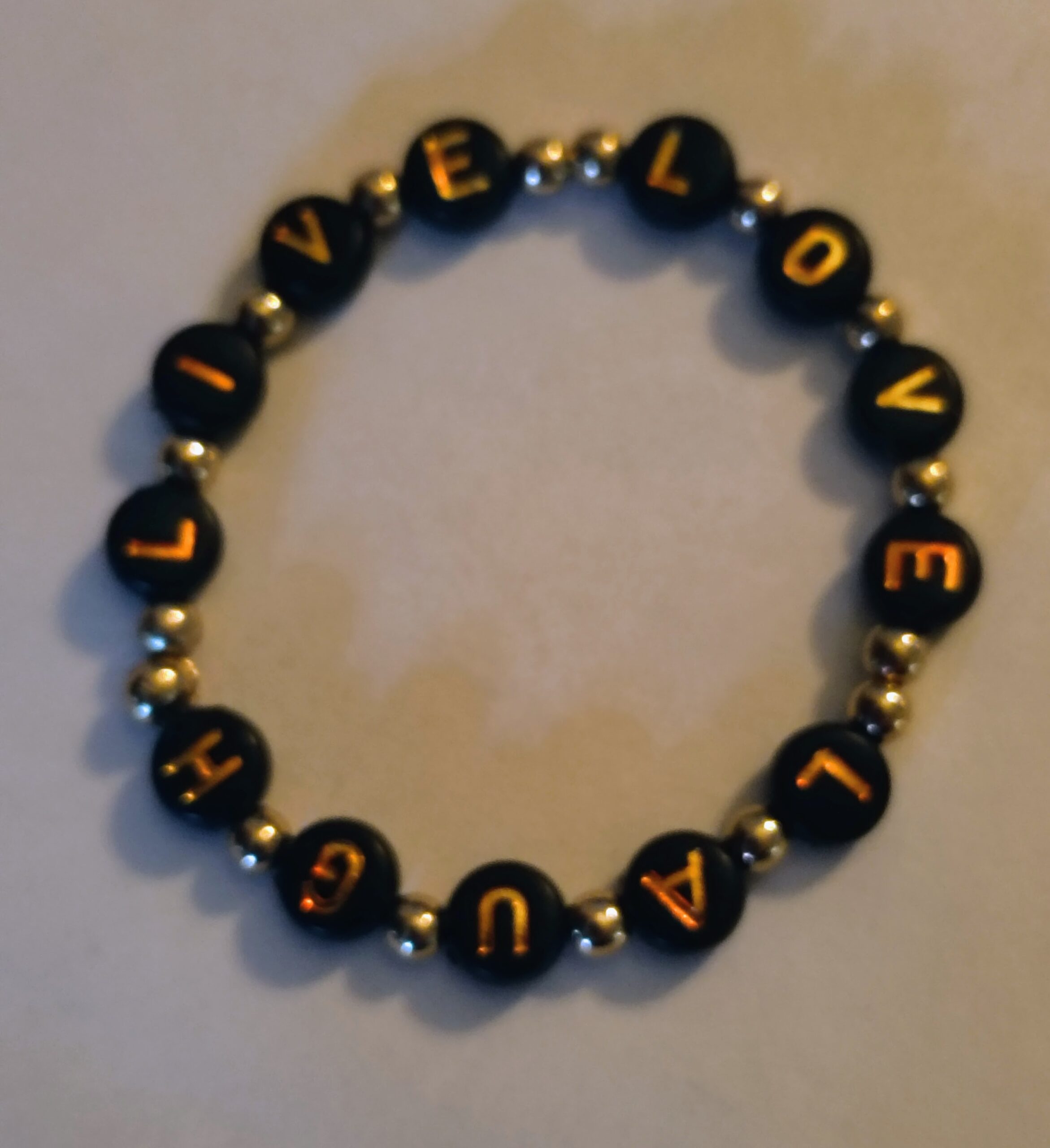 Spread positivity and self-love with the child’s “live love laugh” stretch bracelet.