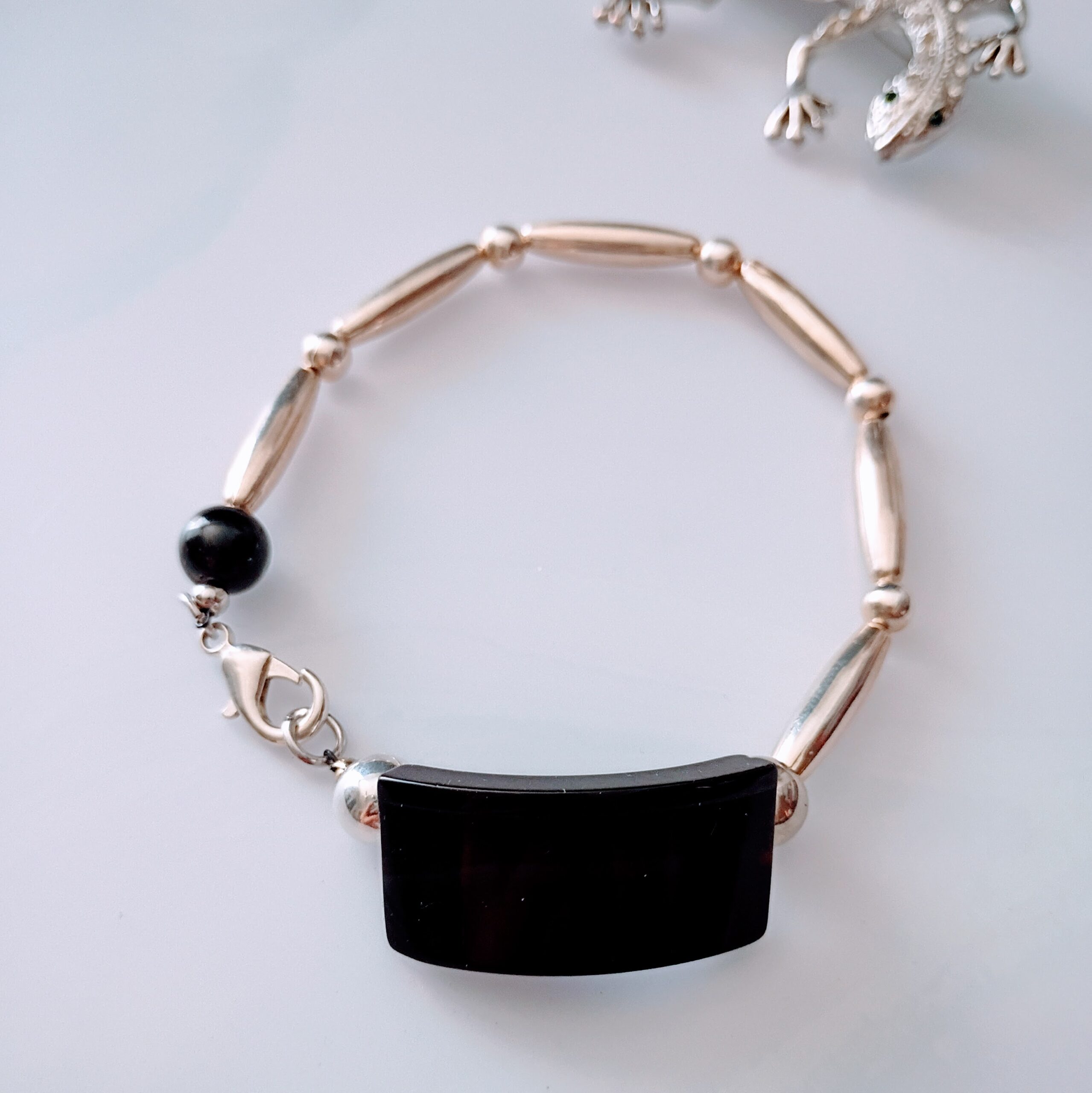 - Features silver beads and 6mm round obsidian bead