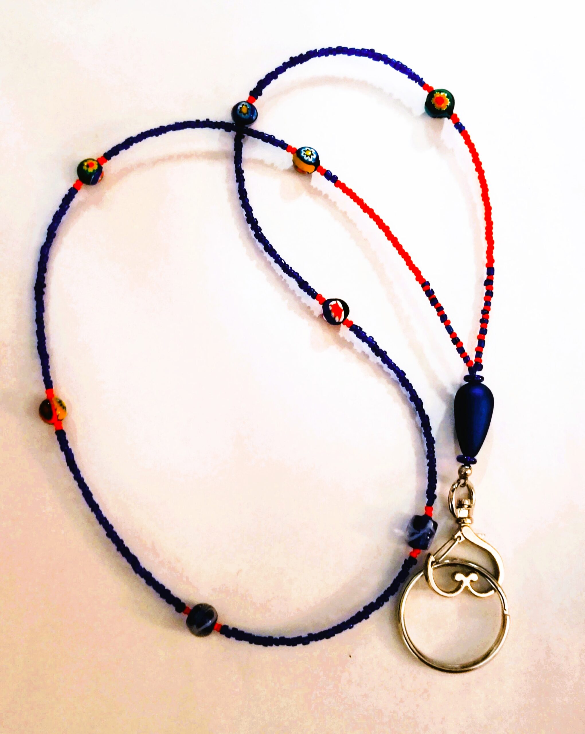 - Features shimmering glass seed beads, millefiori beads, and metallic glass teardrop