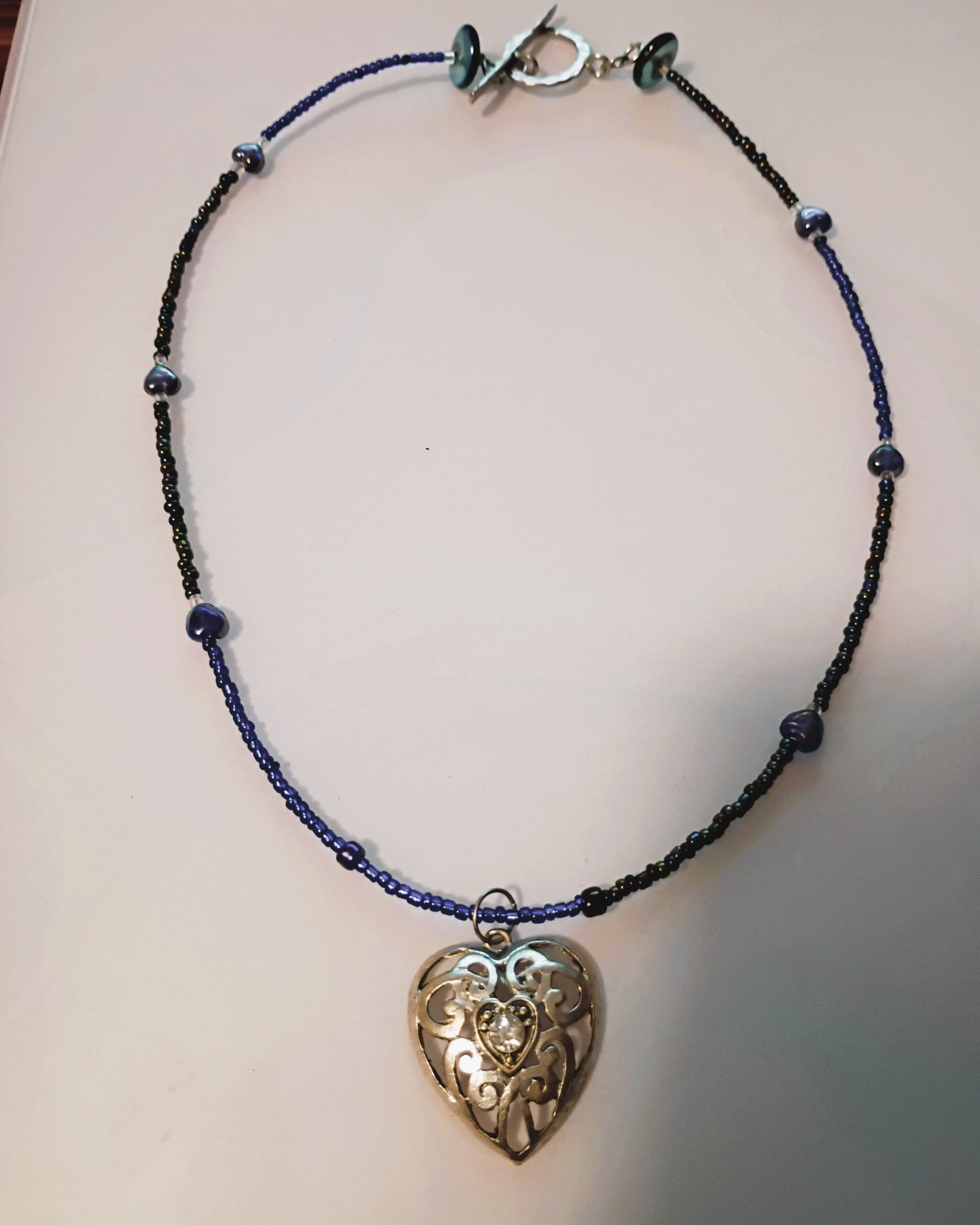 Meticulously crafted with vibrant glass seed beads, Features delicate 5mm heart and 8mm saucer beads. 2.5mm x 3mm silver metal heart. Secure toggle clasp closure for a comfortable fit