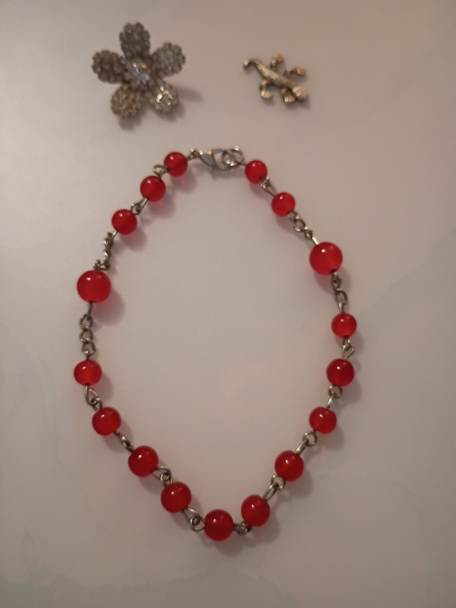 • Handmade with chained red glass rounds in 5mm and 6mm sizes