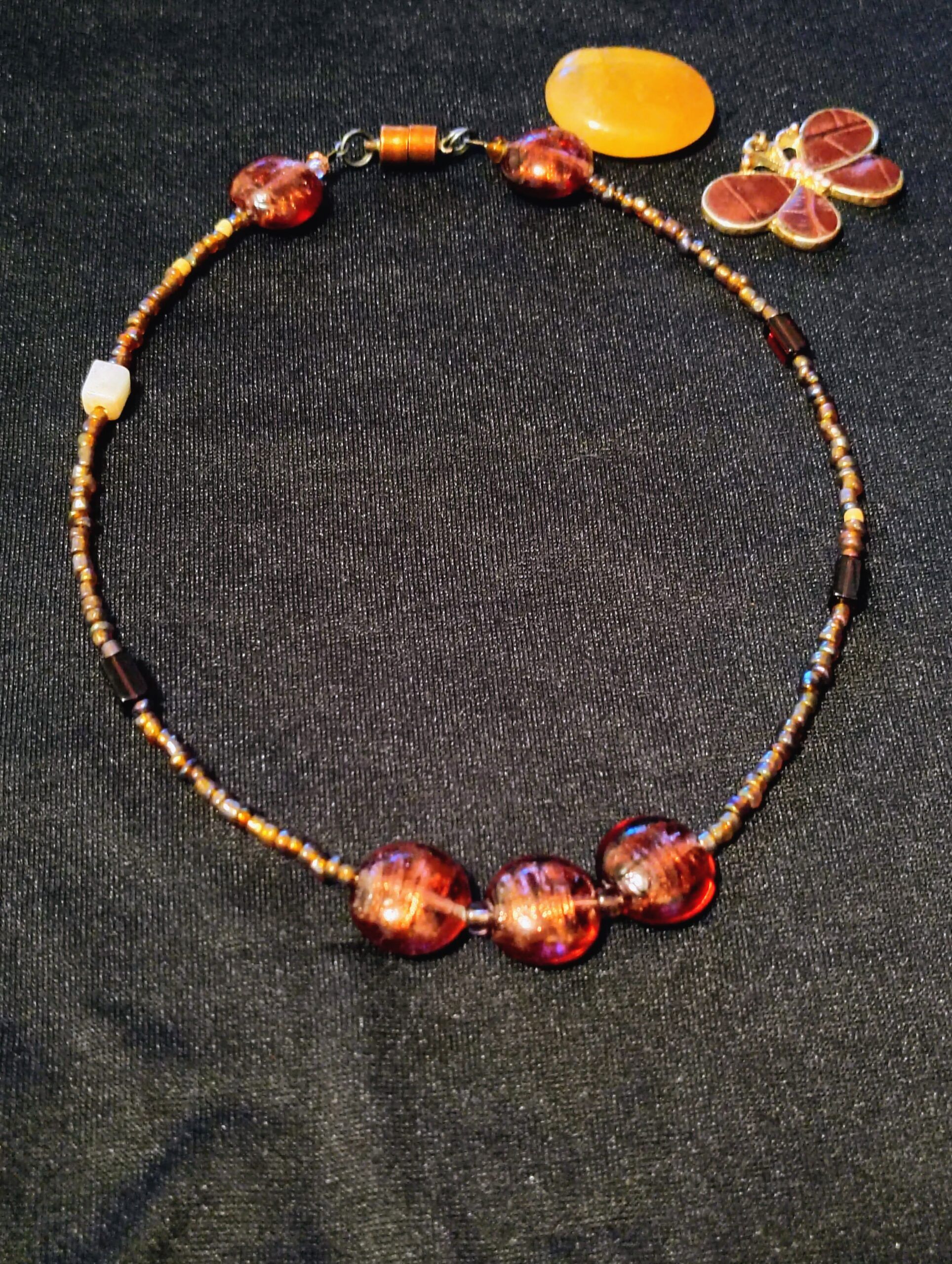This necklace is a true work of art, blending earthy tones and elegant shapes into a stunning accessory.