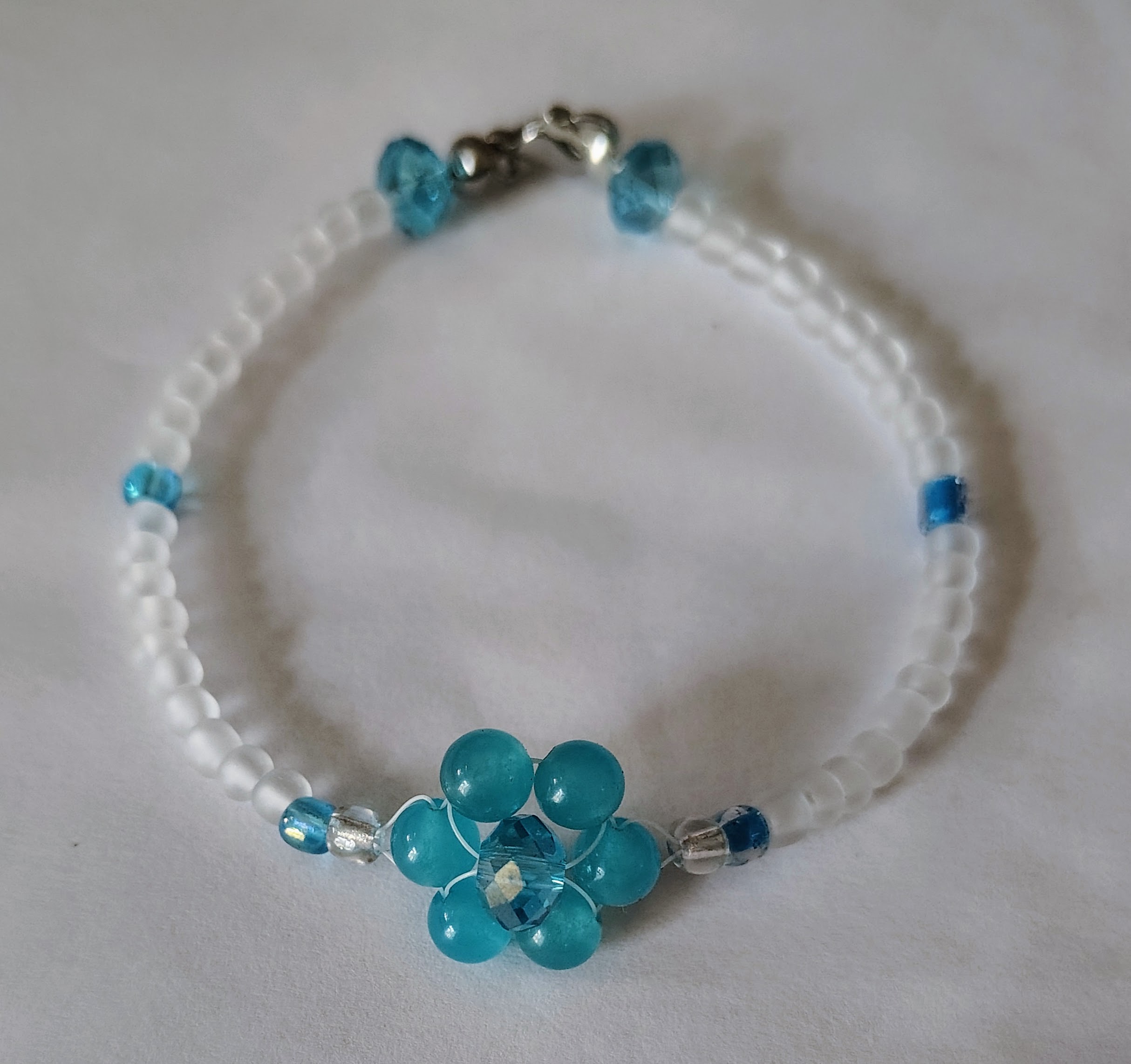 - Handmade with high-quality glass beads and faceted blue crystal 4.5mm